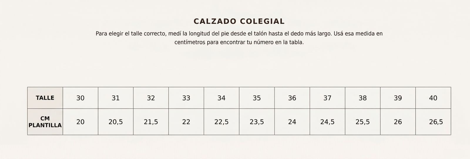 Todos nuestros productos están probados para que el calce sea correcto. Cada pie es único, como quién lo lleva, con lo cual no hay tablas ni referencias válidas para todos.