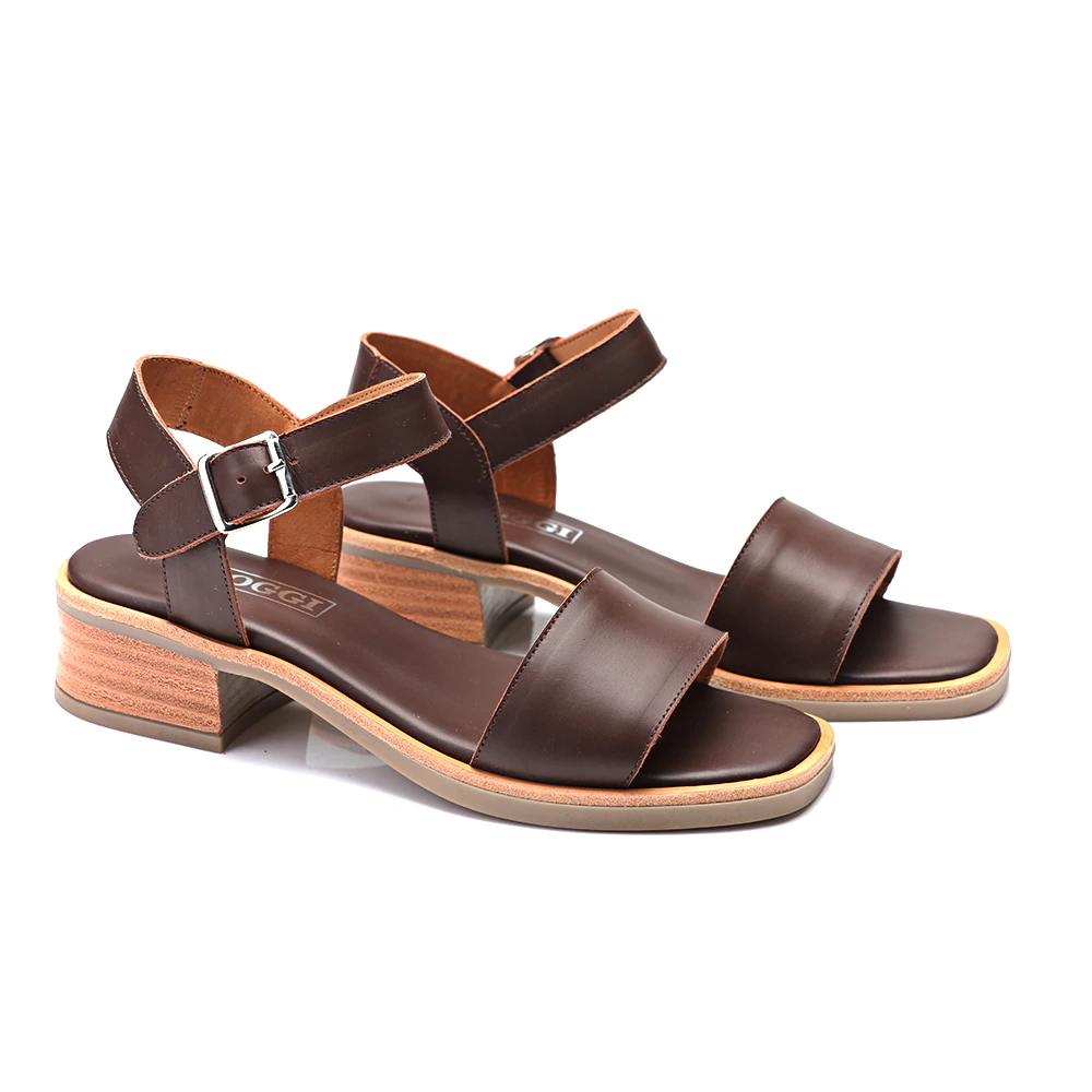 BILBAO (Chocolate): Sandalia confeccionada en cuero liso de primera calidad, forrada en cuero para mayor suavidad y durabilidad. Incorpora una plantilla acolchada que brinda comodidad superior. Su base de goma es flexible, liviana y cuenta con una horma cuadrada que aporta estilo y estabilidad.