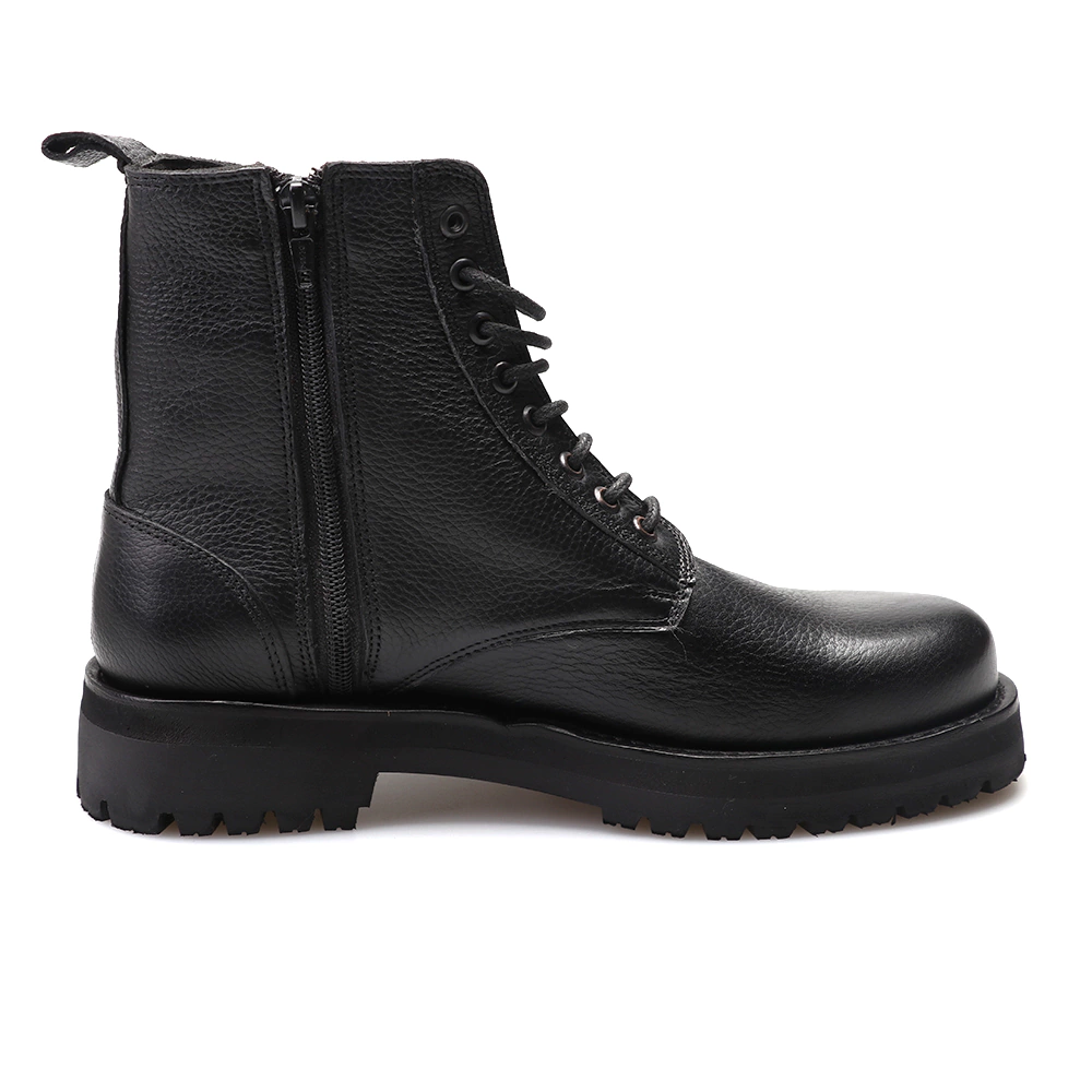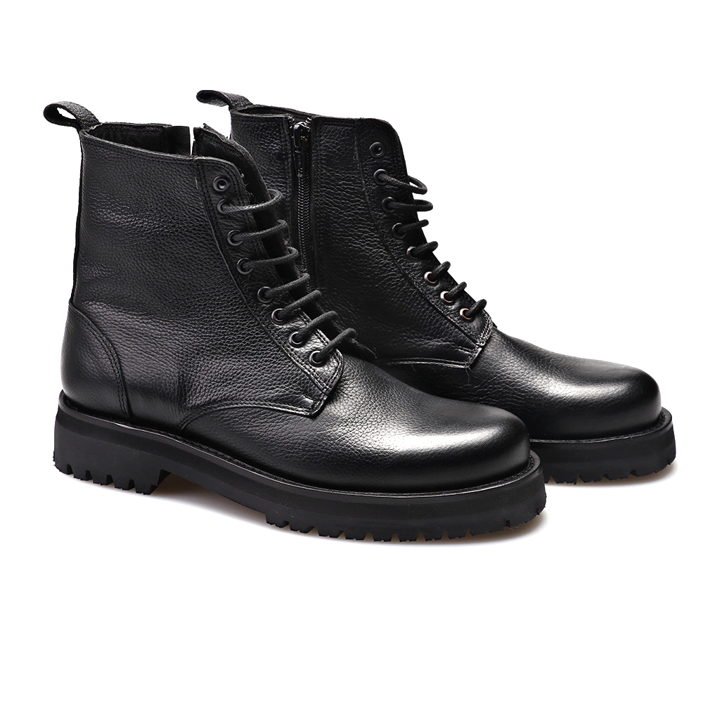 BORC: Borceguí confeccionado en cuero vacuno levemente graneado de suave textura. Forrado en cuero. Posee cierre interno que favorece el calce. Sobre suela de caucho y entre suela de goma eva que lo hace más liviano.