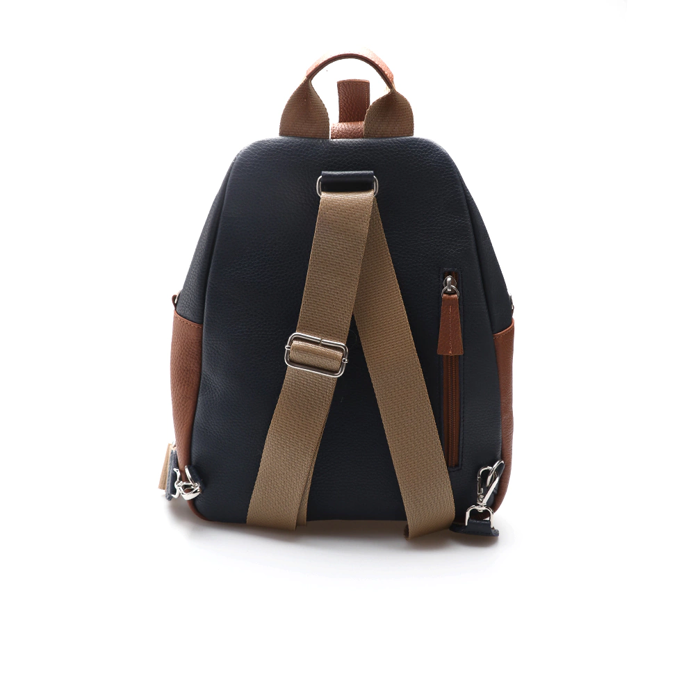 Art. c/1461. Mochila/bandolera confeccionada en cuero vacuno graneado. Posee un compartimiento grande que tiene cierre y además un broche. Bolsillo delantero y bolsilo de seguridad en la parte de atras. La correa es regulable, la mochila dispone de unos ganchos a los costados y la podes usar o como mochila o usar esos ganchos y colgarla como bandolera.