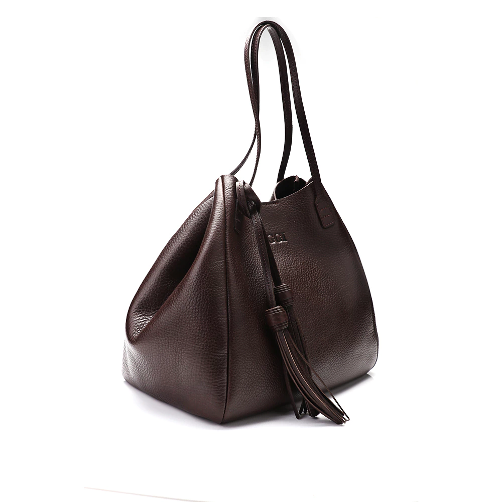 Su diseño amplio permite llevar todos tus esenciales, mientras que el monedero de cuero extraíble es ideal para usar como sobre independiente. El pompón de cuero, también desmontable, aporta un look relajado y moderno.