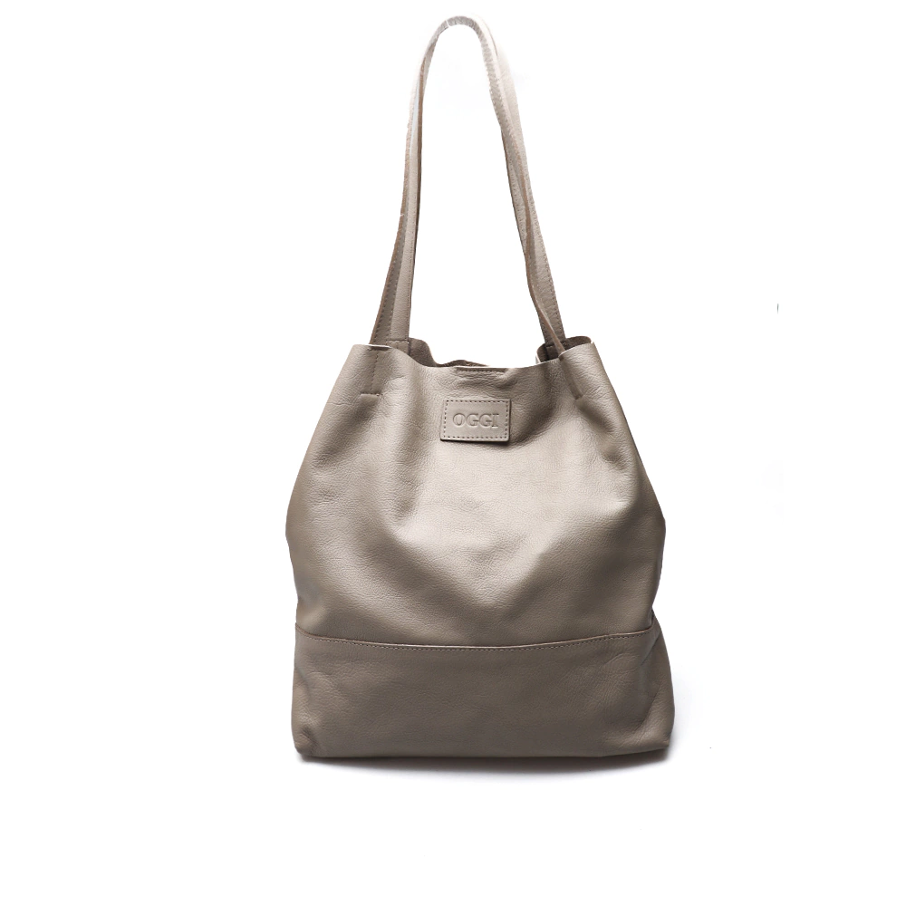 C/4674: Es un bolso tipo tote bag grande. Confeccionado en cuero vacuno súper soft. Adentro trae un monedero de cuero con cierre y un neceser grande extraíble ideal para porta cosméticos o viajes.