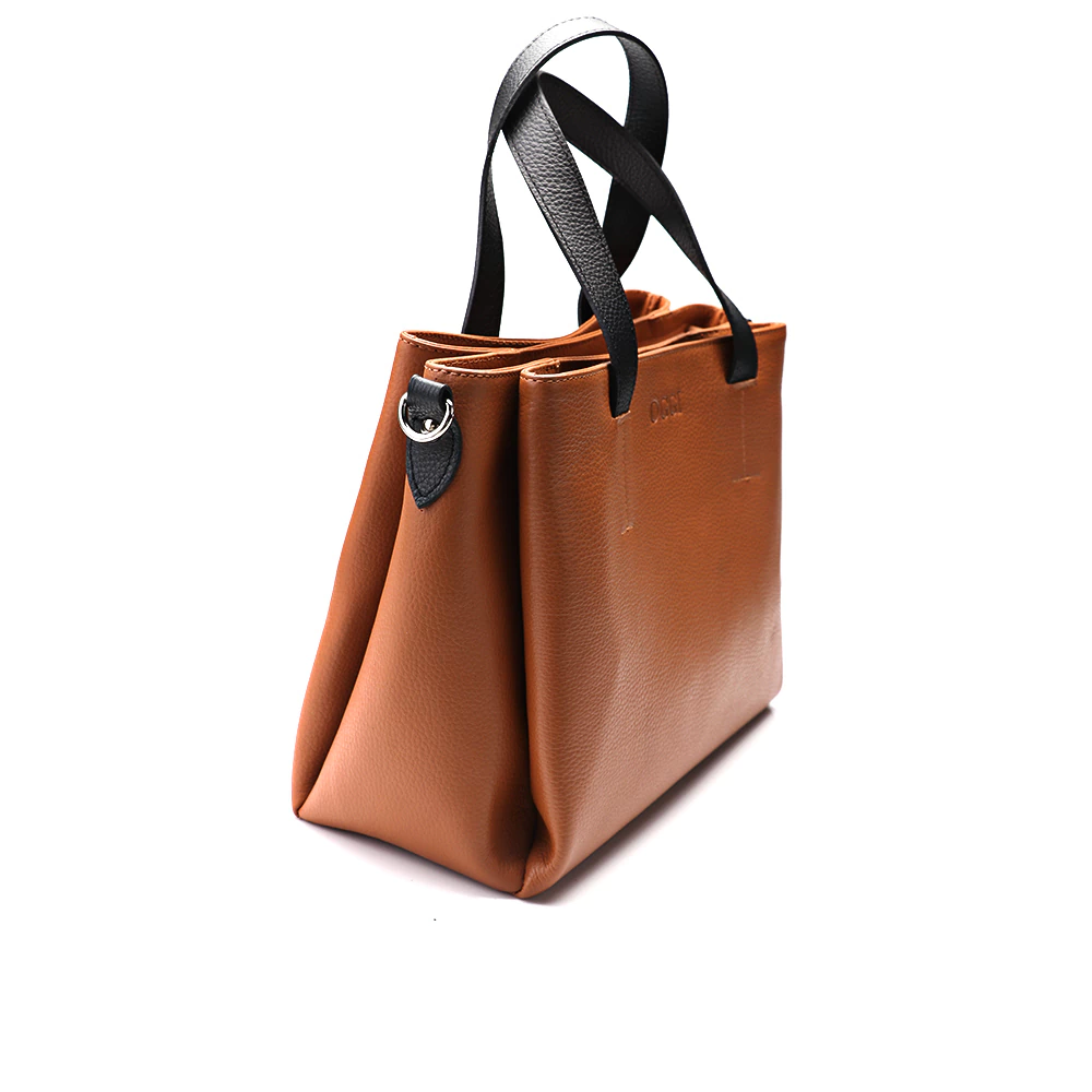 La cartera está forrada en gross de seda, es una cartera armada, con estructura. Las manijas combinadas añaden un toque de elegancia, y trae además una correa extra de cuero que te permite transformarla en una bandolera, adaptándose a cualquier ocasión.