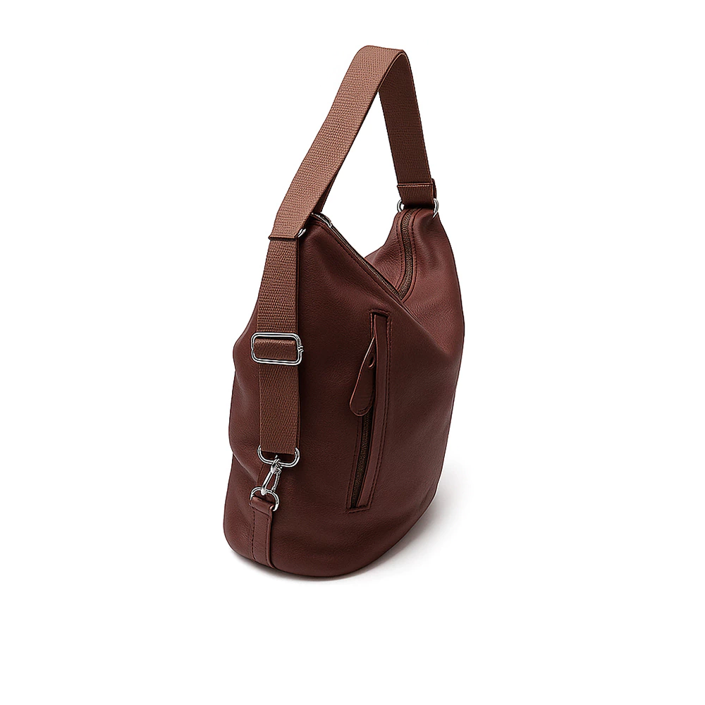 C/4890: Cartera confeccionada en cuero vacuno de suave textura. Lleva correa de tela regulable que permiten convertirla en mochila o bandolera para hacer de ella un accesorio flexible que puede utilizarse en múltiples ocasiones. El cuero es muy soft. Tiene dos bolsillos con cierre en la parte delantera y arriba tambien se cierra con cierre, adentro está forrada en tela de gross de seda y tiene un bolsillo de seguirdad interno con cierre también.