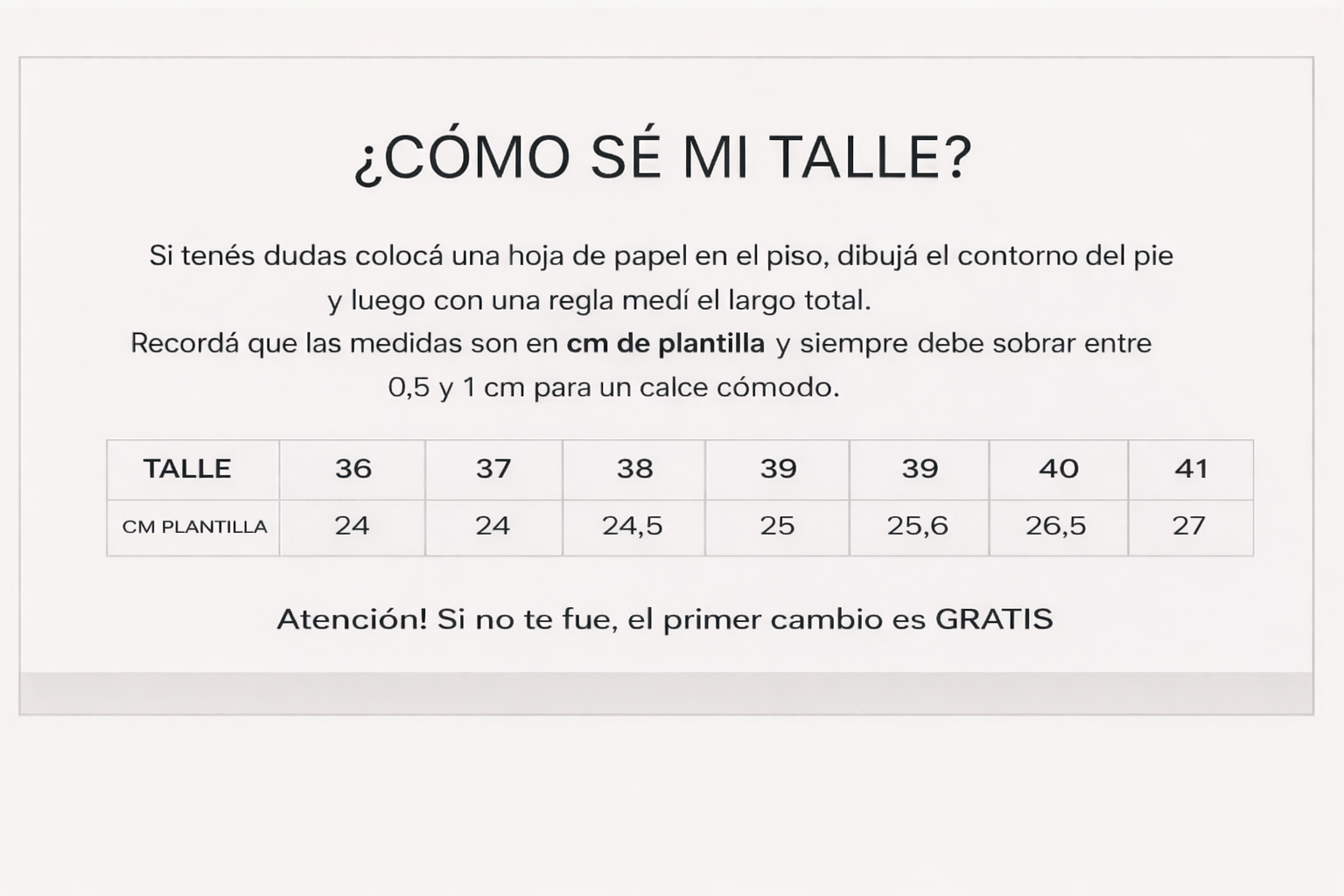 Horma chica: Si estas entre dos talles, llevar el mas grande.