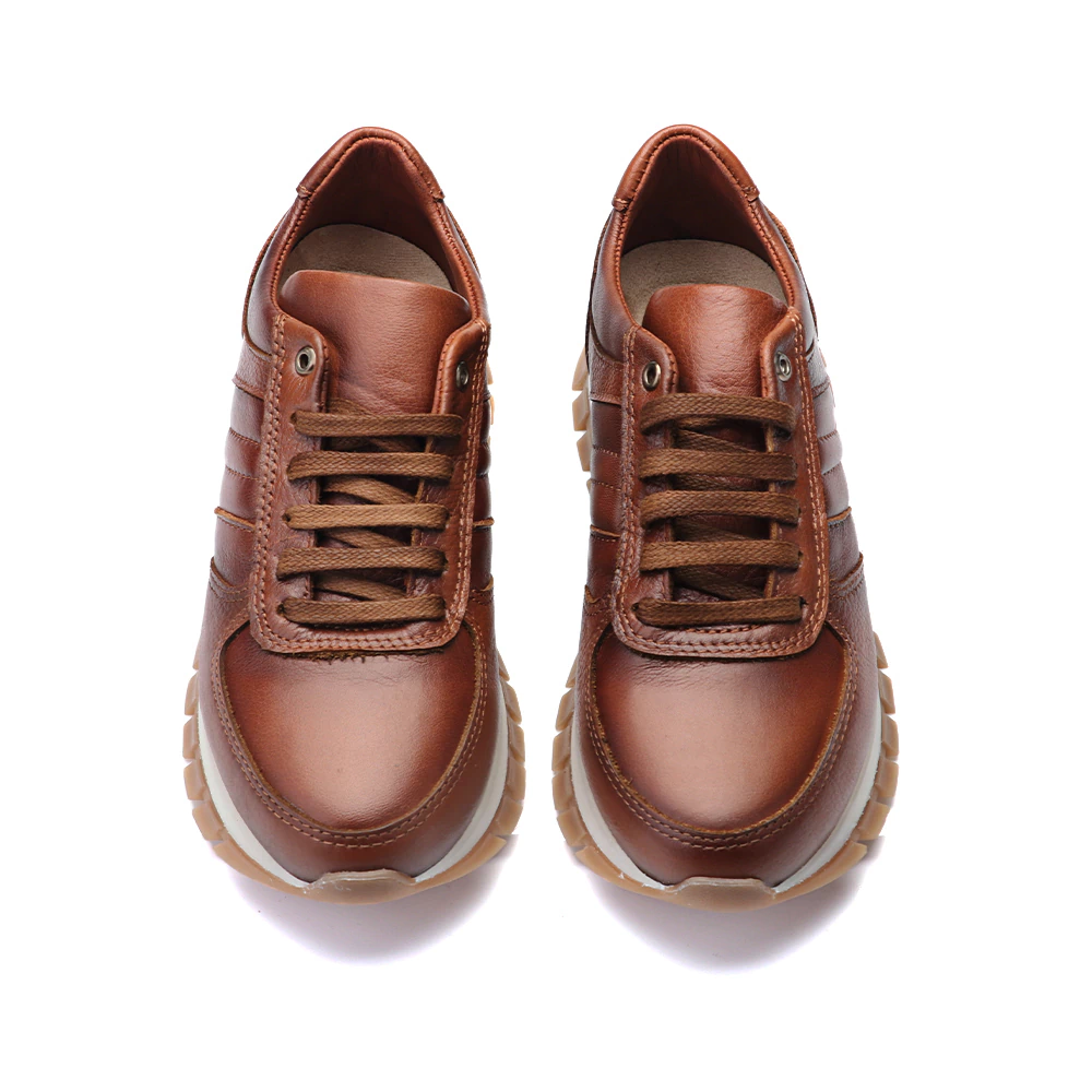 Sol : Zapatilla urbana confeccionada en una combinación de texturas floter y cuero liso, forrada íntegramente en cuero para brindar mayor confort. Lleva un tratamiento artesnal de brush off para darle un efecto bi tonal único. Cuenta con fondo estilo running de goma combinado y plantilla extraíble para facilitar la limpieza y el cuidado.