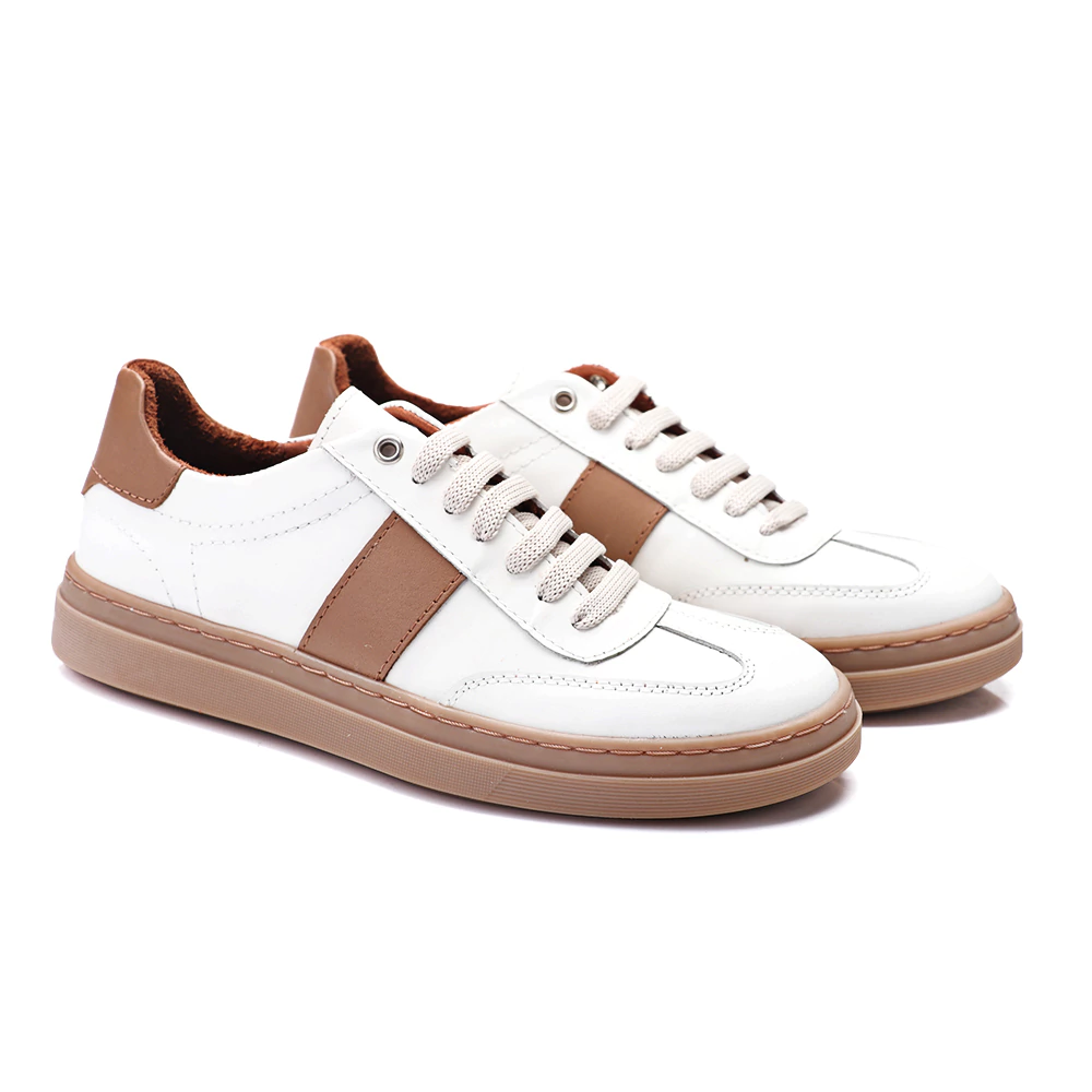 Beneto (Crudo y suela): Descubrí la zapatilla urbana ideal, confeccionada en cuero liso y combinando color suela y manteca. Su diseño versátil y extremadamente cómodo se potencia con un forro interno de cuero y base caramelo, pegada y cosida para máxima seguridad.